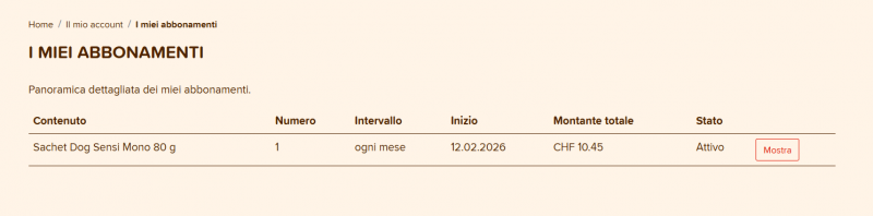 Sarai quindi reindirizzato al carrello dove potrai rimuovere o aggiungere prodotti e creare nuovamente l'abbonamento come descritto sopra.
